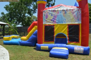 For dates and prices specifications please contact us by calling 352-223-6915 or filling out this form.This unit is a combo of Bounce House, with Slide and Basketball Hoop. Can be used Wet or Dry. Measurements: 19 ft L x 14 ft W x 10 ft H.