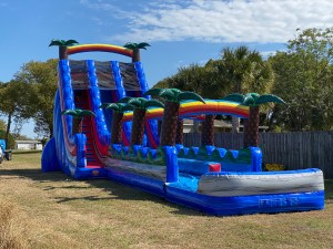 For dates and prices specifications please contact us by calling 352-223-6915 or filling out this form.This unit is a combo of Bounce House, Double Slide, Obstacles and 2 Basketball Hoops.Can be used Wet or Dry.Measurements: 30 ft L x 20 ft W x 15 ft H.