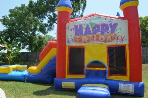 For dates and prices specifications please contact us by calling 352-223-6915 or filling out this form.This unit is a combo of Bounce House, with Slide and Basketball Hoop. Can be used Wet or Dry. Measurements: 19 ft L x 14 ft W x 10 ft H.